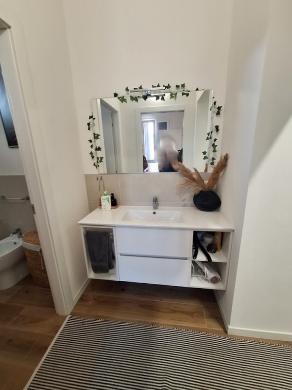 L'immobile verrà consegnato arredati di blocco cucina, cabina armadio attrezzata, un armadio nella cameretta e arredo bagno.